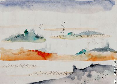je suis content, j'ai eu des nouvelles de quatre copines aujourd'hui, un peu de baume au coeur sous cette pluie battante et cette humidité qui s'installe doucement. Elles ont une pêche d'enfer que je leur envie! Vivent les femmes. Pour le fun une petite aquarelle encre, sortie toute humide de cette pluvieuse journée